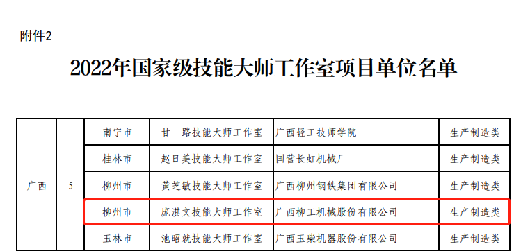 近日,2022年國家級高技能人才培訓基地和技能大師工作室項目單位備案名單公布,柳工龐淇文技能大師工作室獲評國家級技能大師工作室。至此,柳工已有4個國家級技能大師工作室。