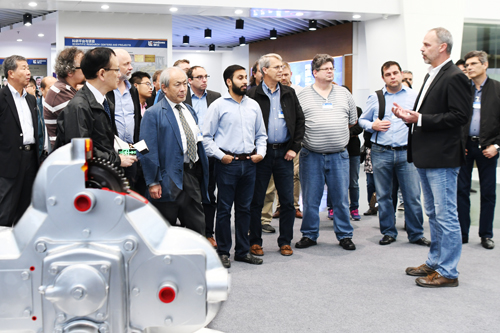10月24日下午,會議組織與會成員來到柳工研發中心進行參觀交流,公司研究總院試驗技術總監愛德華接待來訪。